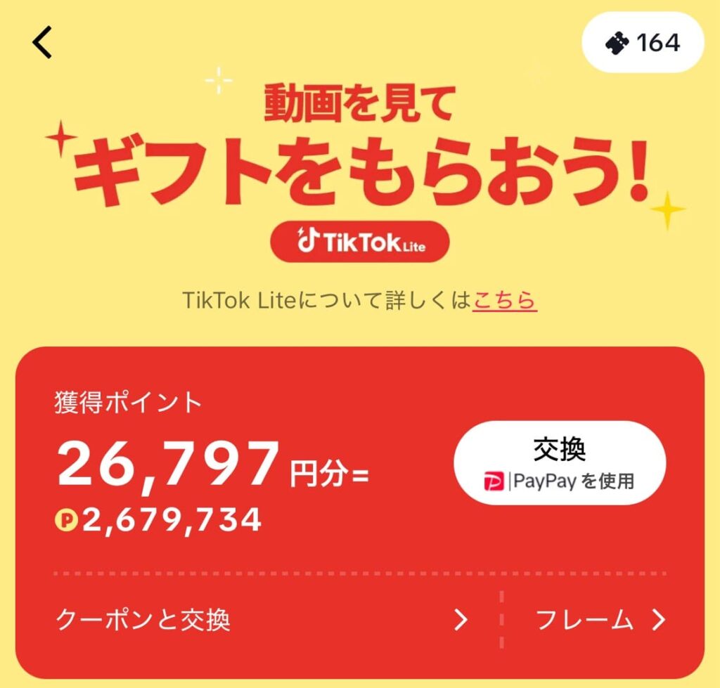 TikTokライトアプリ招待キャンペーンで獲得したポイントの使い道として下記のポイントに交換する方法を解説しました。