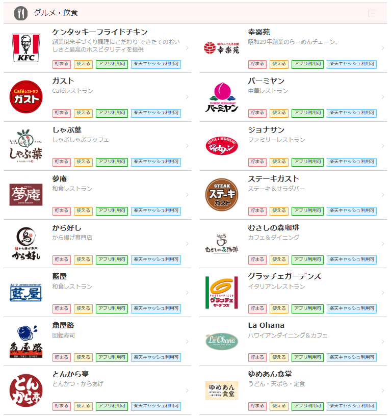 例えば、楽天と提携しているお店で楽天ポイントカードを提示すると、楽天ポイントが貯まります。