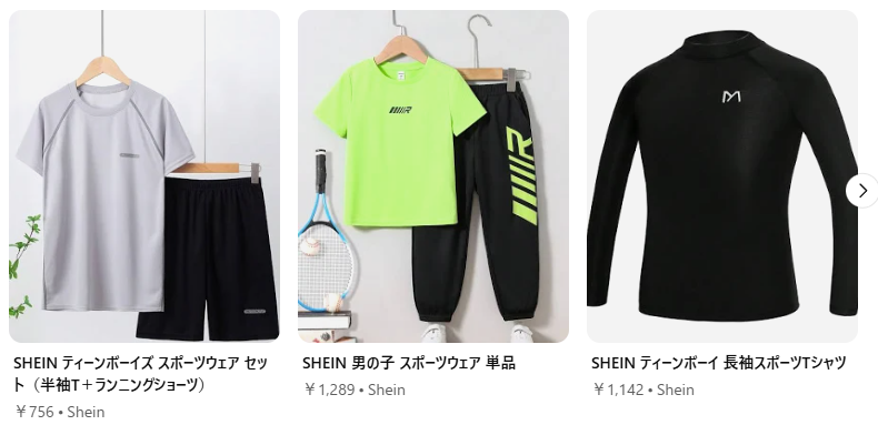 SHEINで安くなるタイミングにお子様がサッカーをしている場合に狙うべきアイテムは下記のようなものがあります。