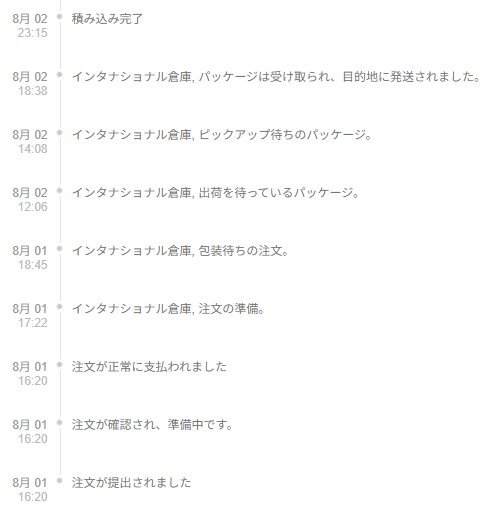 その後、日本に到着してから自宅に配送が完了するまで、合計5日間かかりました。