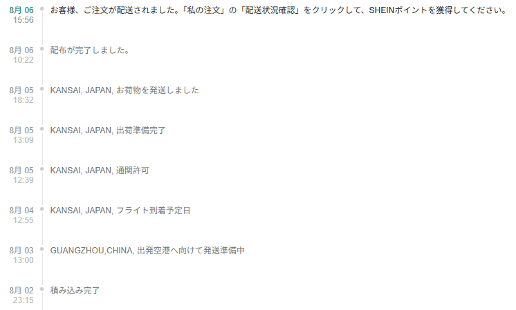 SHEINの「目的地の空港に到着」とは?あとどれくらいかかる?