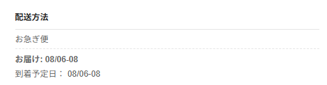 注文時の明細にも上記の通り、8日に到着と記載されています。