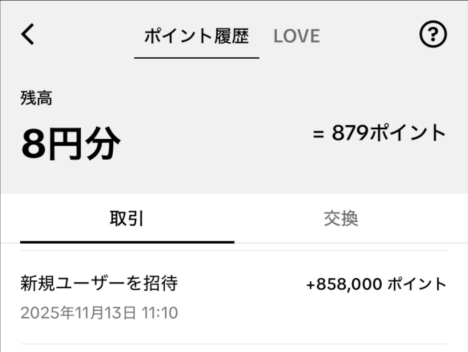 ●PayPayポイントを交換した場合、正常に完了すると下記の通りPayPayアプリの取引履歴に表示されます。