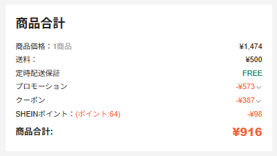 現在、私のアカウントでは、SHEINポイントが64ポイントがありました。