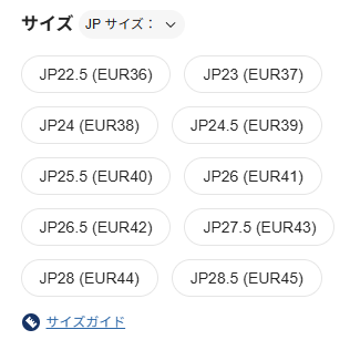 サイズガイドで詳細表示が可能