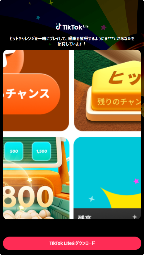 もし、心が優しい方がいらっしゃるのであれば、下記のヒットチャレンジの招待URLからTikTokライトアプリを導入していただけると嬉しいです。