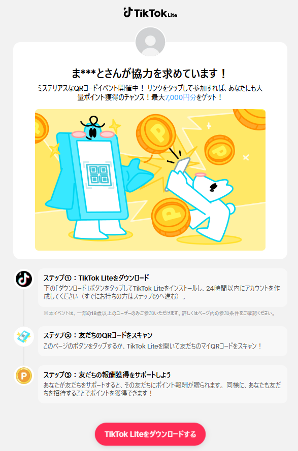 TikTokライト12000円招待キャンペーンで招待ポイントを獲得する前に…