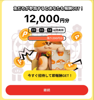 こちらの招待キャンペーンを利用して、紹介された方が招待リンクをタップすると、下記の画像が表示されます。