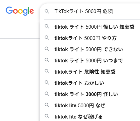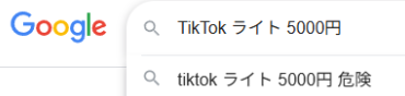 「TikTokライト5000円危険」と検索される理由は下記の通り。