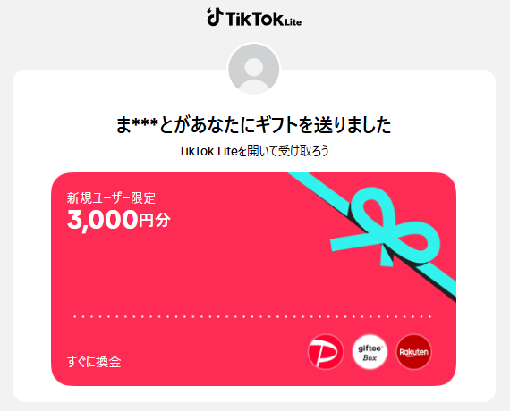 条件は、TIkTokLiteアプリのダウンロード、そして、無料会員登録でもらえちゃいます。